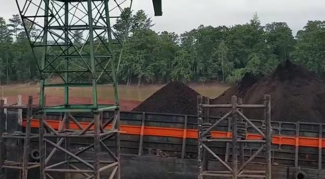 Ilustrasi gambar diatas adalah salah satu tambang kami di salah satu pulau besar indonesia yaitu pulau kalimantan atau pulau borneo. Tampak pada gambar roda berjalan untuk memuat batu bara ke kapal tongkang yang bermuatan 5200ton dan dialirkan kelaut lepas yang selanjutnya akan di pindahkan ke kapal vessel para importir asing.